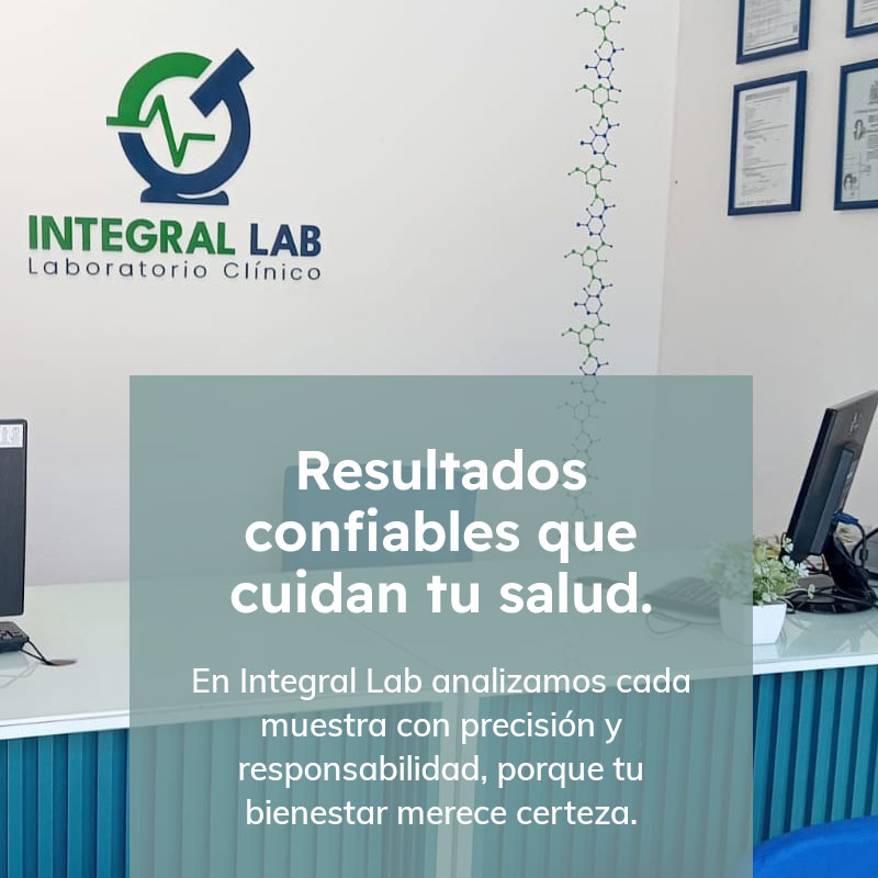 En INTEGRAL LAB contamos con personal altamente calificado y con amplia experiencia, lo que garantiza resultados precisos y confiables en cada análisis. Ofrecemos precios competitivos, atención personalizada y entrega puntual de resultados. Agenda tu estudio hoy mismo.